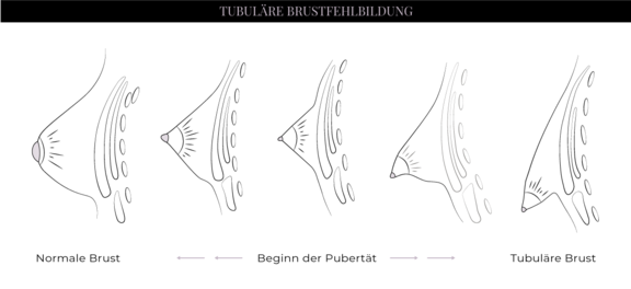 Die tubuläre Brust ist eine Fehlbildung der weiblichen Brust, die bereits während der Pubertät auffällt. Sie wird auch als Rüsselbrust oder Schlauchbrust bezeichnet und zeichnet sich durch eine schmale und röhrenförmige Brustform aus. Die Brustdrüse ist nicht vollständig entwickelt, was dazu führt, dass der untere Teil der Brust schmal bleibt und die Brust insgesamt eine schlauchartige Form annimmt. Häufig ist der Brustwarzenhof vergrößert, da das Drüsengewebe durch diesen hindurch drückt. Dies führt oft zu Unsicherheiten bei betroffenen Frauen, da die Brust nicht den üblichen ästhetischen Vorstellungen entspricht. Diese Fehlbildung betrifft nicht nur das äußere Erscheinungsbild, sondern kann auch das psychische Wohlbefinden und das Selbstwertgefühl stark beeinträchtigen